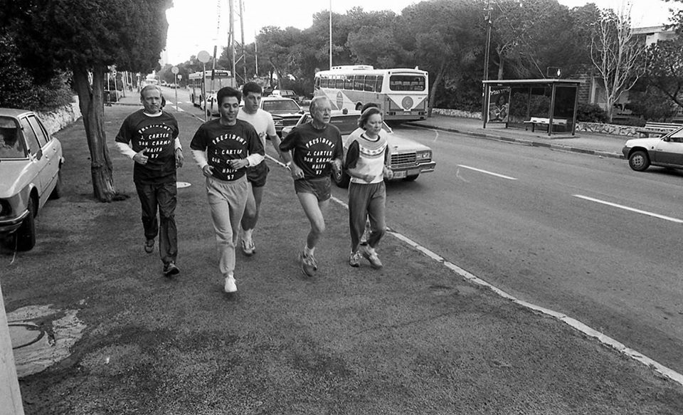 תמונת ארכיון של נשיא ארה"ב לשעבר גימי קרטר בריצת בוקר בשדרות הנשיא בחיפה, התמונה צולמה בשנות השבעים, את התמונה שלח אמין נסר אלדין.