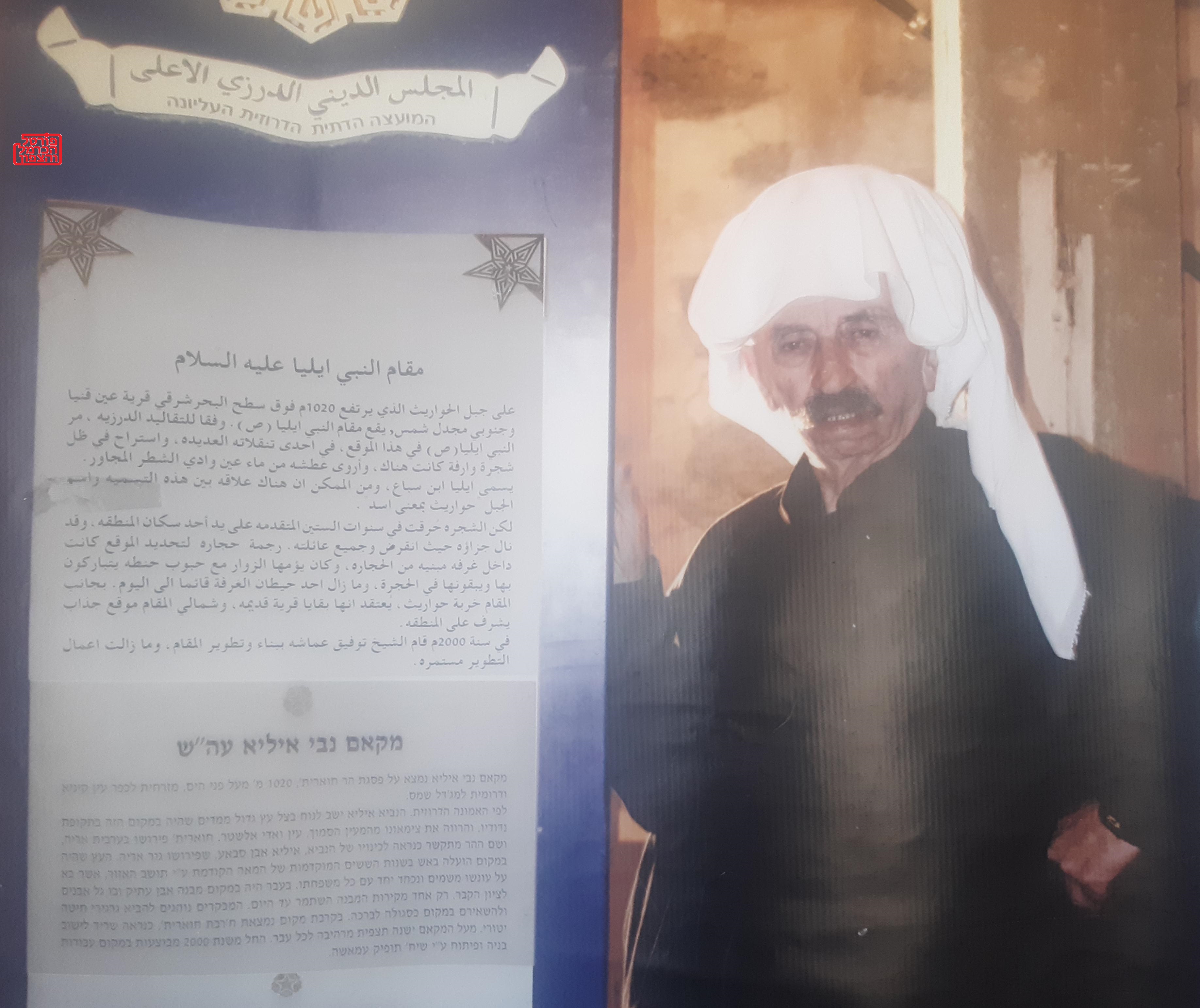 תמונה מתוך פרסום מוצב במקאם נביא אלייא עה"ש בכפר מסעדה ברמת הגולן של שייך תופיק עמאשה, אחד האנשים שעשה יותר מכל אחד אחר, למען השרשת וחיזוק המקומות הדתיים בגולן.