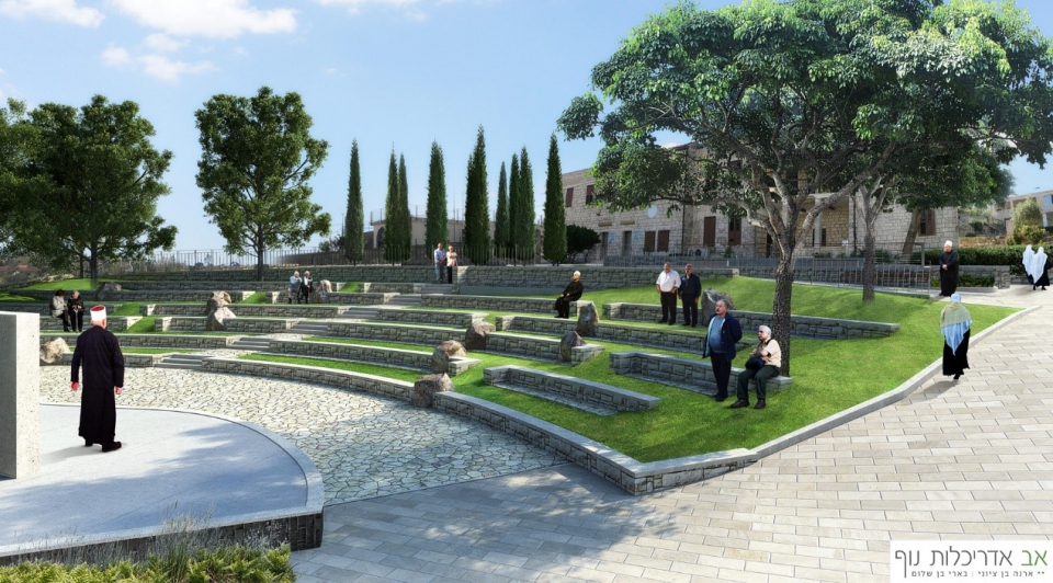 תמונות הדמיה של התכנון הנופי במתחם. אב אדריכלות נוף