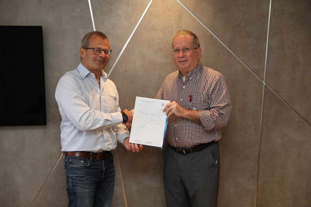 פרופ אילון אייזנברג, דיקאן הפקולטה לרפואה בטכניון מעניק לפרופ מיקי הלברטל את המנוי כפרופסור