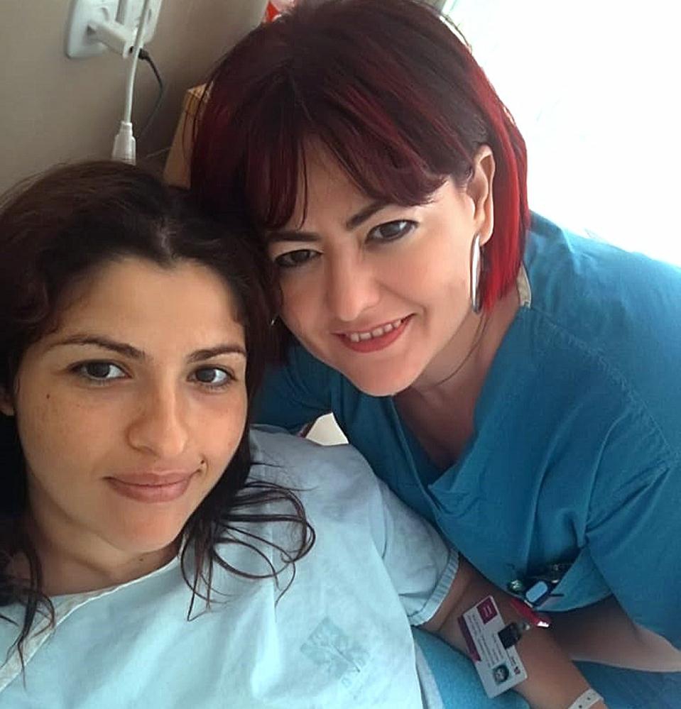 בתמונה: אורטל תימור ואלינה ליכטצינדר במחלקת יולדות של רמב"ם אחרי הלידה.