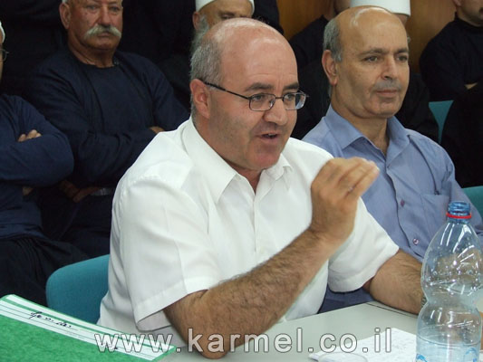 תמונת ארכיון של עו"ד פרח חלבי יחד עם המהנדס סלימאן נסר אלדין, התמונה צולמה בבית המשפט בדיון בעניין מעצרים של צעירים שהיו מעורבים במאבק האדמה במנסורה וג'למה.