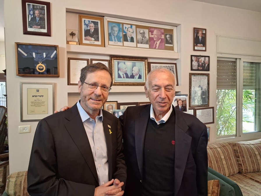 נשיא המדינה יצחק בוגי הרצוג יחד עם בהיג מנסור, הנשיא הרצוג הגיע לבית משפחת מנסור לנחם את המשפחה במותו של שייך כמאל מנסור ז"ל.