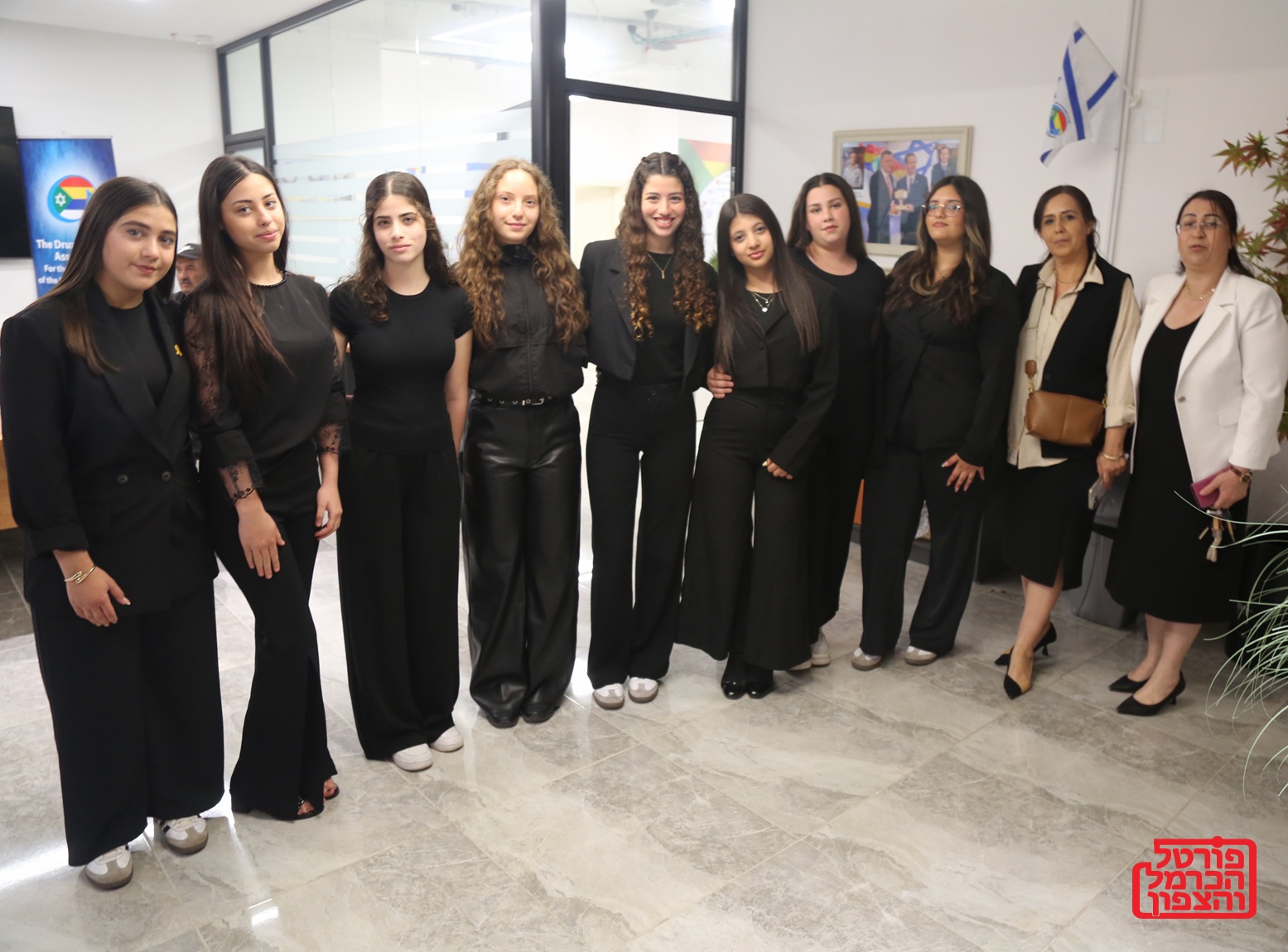 תמונה של תלמידות חט"ב עוספיה בהנהלת אימאן אבו פארס תלמידות כיתה ח' ו ז' ששרו את השיר voices of freedom voices of peace תפילה למען החטופים בעזה. הן העתיד הטוב לחברה המקומית ולמדינה.