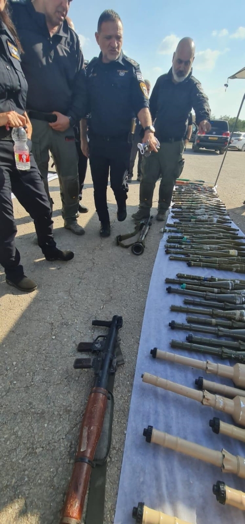 המפכ״ל: "כמות כלי הנשק ואמצעי הלחימה של מחבלי חמאס אליהם נחשפתי במהלך ימי המלחמה מעצימה עוד יותר את גבורת השוטרים שהיו המגן האנושי של יישובי העוטף בפרוץ הלחימה. החתירה למגע של כוחות המשטרה משמר הגבול והימ״מ הביאה לניטרול מאות מחבלים ובכליהם תפסנו כמות עצומה של אמצעי לחימה קטלניים. אני רוצה לשבח גם את אנשי מחלקת החבלה של משטרת ישראל שמטפלים בכל אמצעי לחימה שנתפס. העולם כולו צריך לראות ולהראות את הנשק הרב שתפסו השוטרים שלנו אצל מחבלי חמאס. התפיסות האלה סיכלו עוד ועוד מעשי רצח שתכננו חוליות המחבלים".