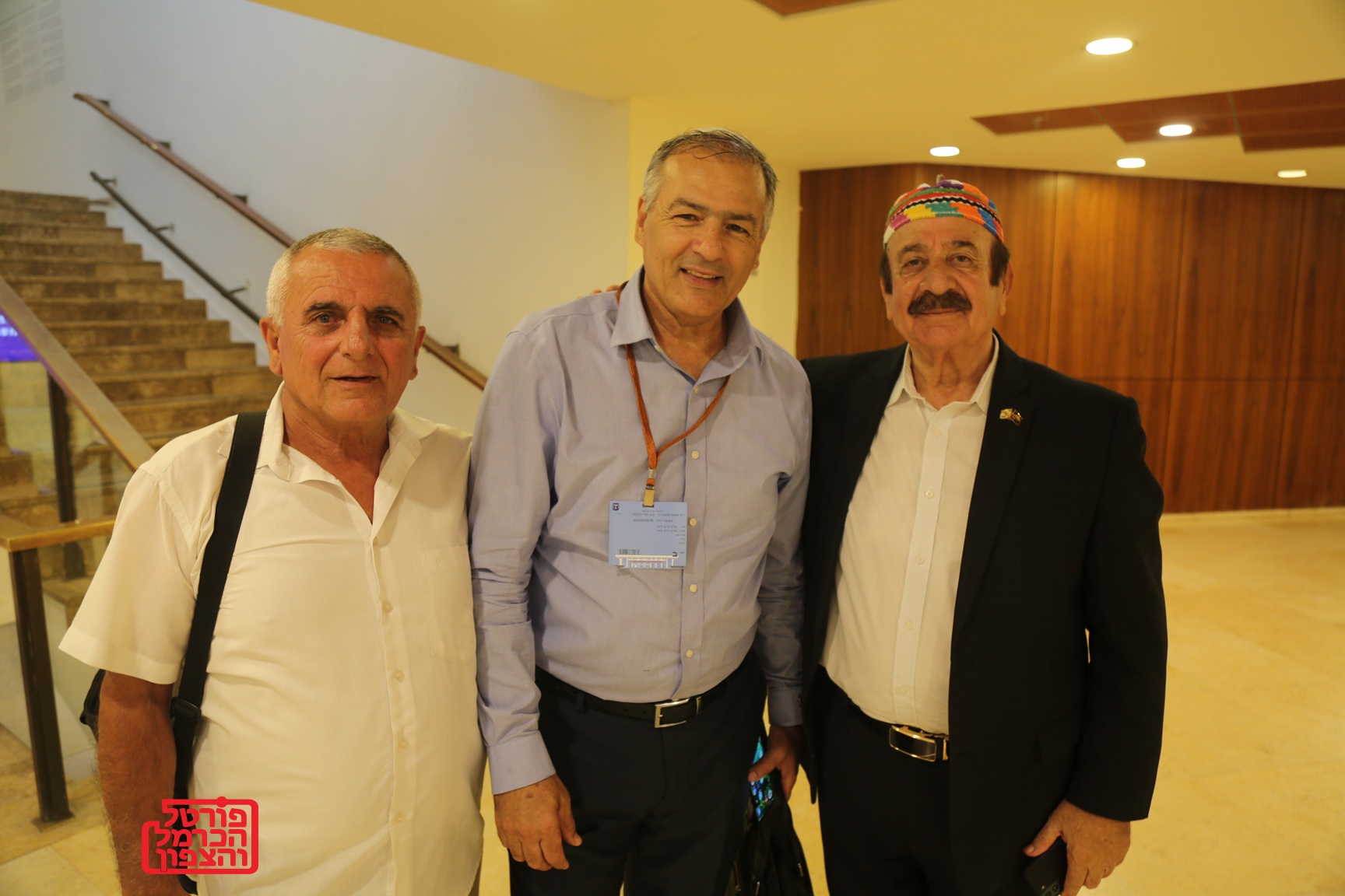 תמונה של שלושה פעילים של תנועת הליכוד, שהגיעו לכנסת לביקור חברי כנסת של התנועה שלהם, וליד נסר אלדין תושב דאלית אל כרמל, דוד עמר תושב עתלית וגהאד מוסטפא תושב הכפר הדרוזי סאג'ור בגליל העליון.