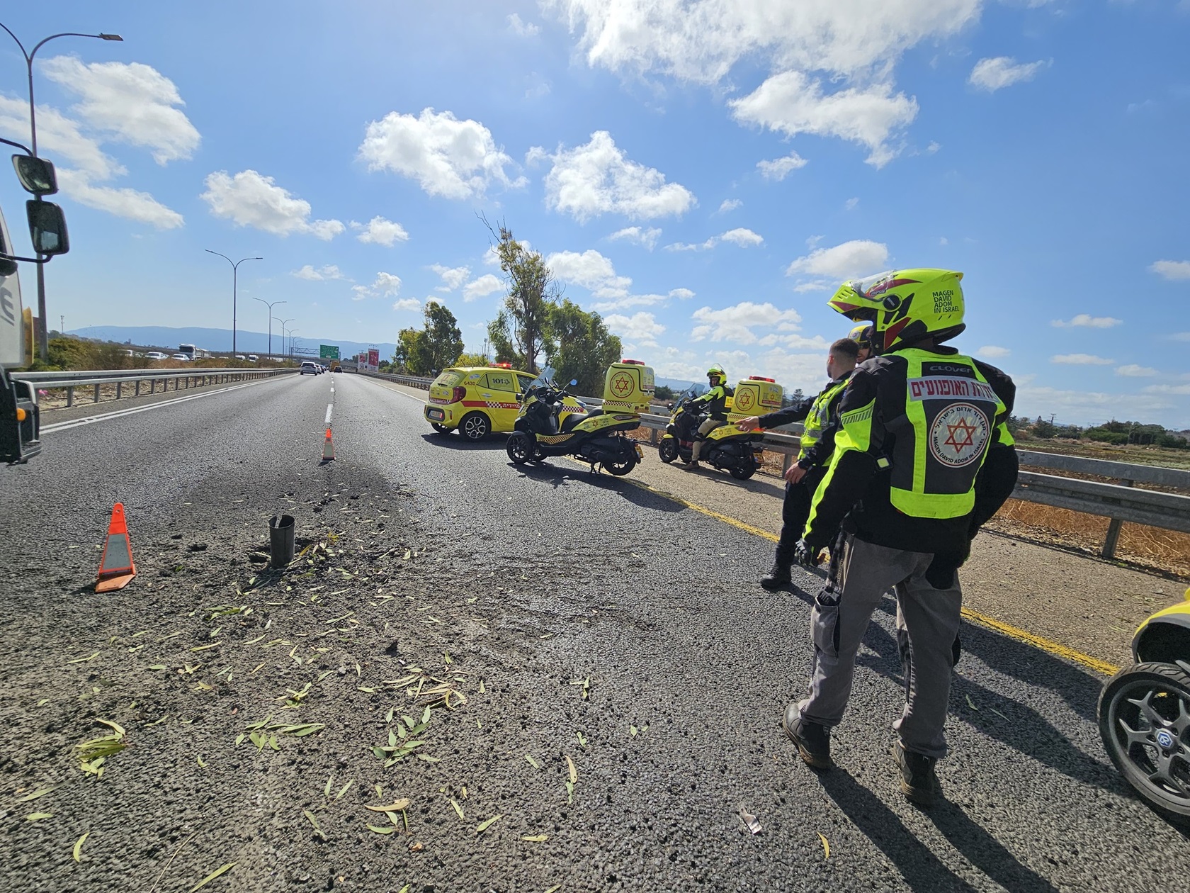 תמונה של דובר מד"א, טיל שחדר כביש ראשי באזור הקריות, תמונות מלחמה .