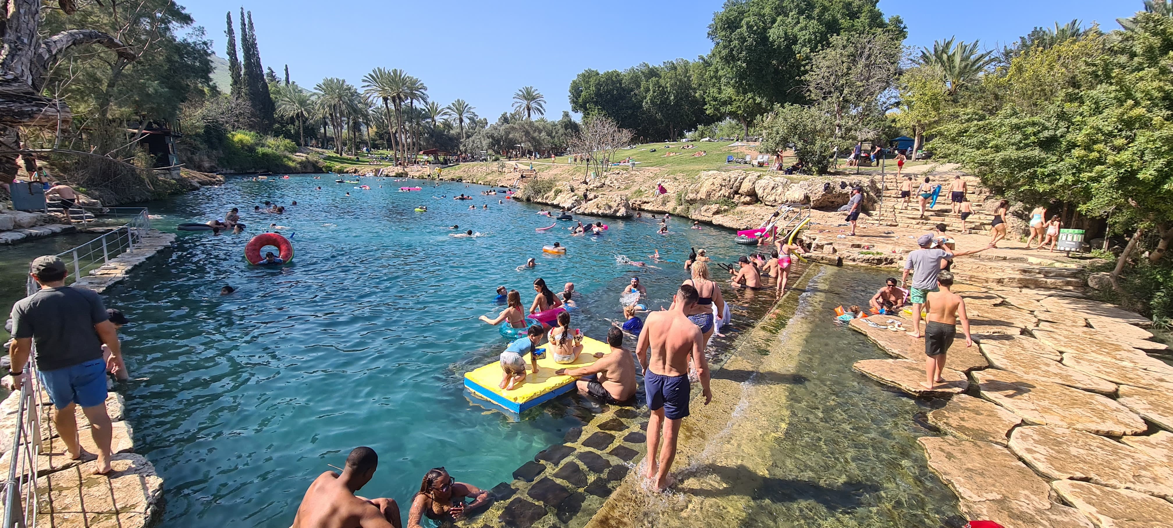 משפחות מנצלים את חופשת פורים ליהנות ממקום טוב לכל המשפחה בגן השלושה הסַחְ'נֶה גן לאומי בעמק המעיינות למרגלות הר הגלבוע, סמוך לקיבוץ ניר דוד. הגן זכה בתואר אחד מעשרים הגנים היפים בעולם של הטיים מגזין.