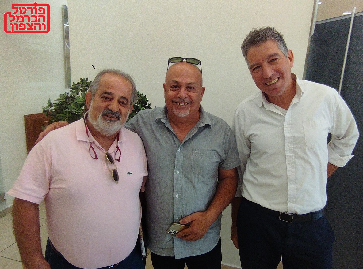 תמונה מסניף הפועלים בדאלית אל כרמל, של מנהל סניף הבנק יניב שוורץ, יחד עם ניזאר נסר אלדין מנהל בחברת אוטובוסים וד"ר מאגד חסון, לכל אחד מהשלושה יש תרומה רבה לחברה והשלושה מובילים ללא הפסקה תמיכה לנזקקים.