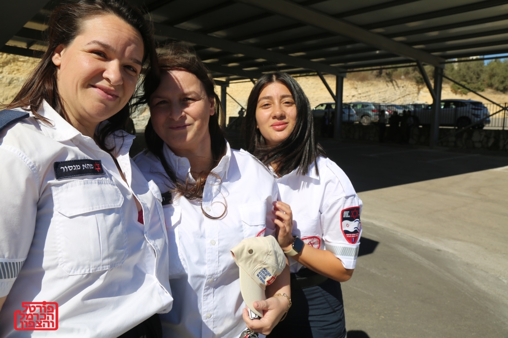 צוות מד"א תחנת דאלית אל כרמל עוספיה שתרומתם רבה למען החברה, התמונה צולמה בהלוויה של אחסאן דקסה ז"ל בדליה, הם היו חלק מצוות מתנדבים גדול שעזב הכל כדי לסייע ביום קשה, בתמונה לינה והב, הודא חסון ומהא מנסור.