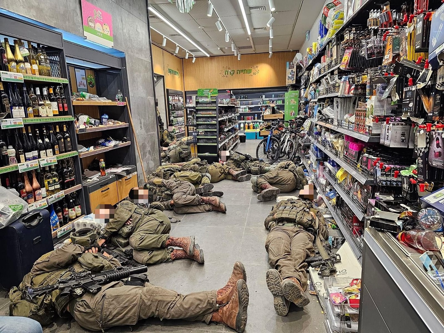 תמונה מרגשת שממחישה את הלב הענק של הישראלים שתמיד מחבקים את חיילי צה"ל, בתמונה משנת 2023 חיילי צה"ל נחים מהלחימה בעזה, בחנות אלונית של דור אלון, בכפר עזה, צילום של בתיה הולין.