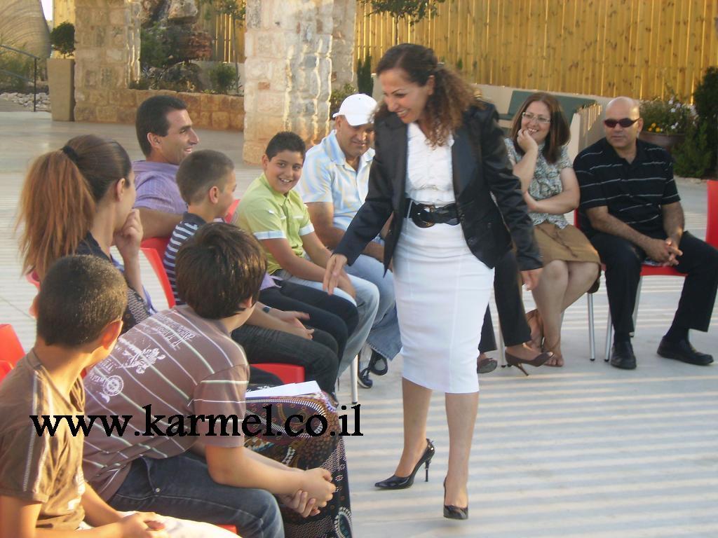תמונת ארכיון משנת 2009 של המחנכת סאמיה חלבי וקבוצת תלמידים והוריהם, התמונה צולמה במסגרת יום גיבוש לתלמידים שערכה המחנכת בהשתתפות הההורים.