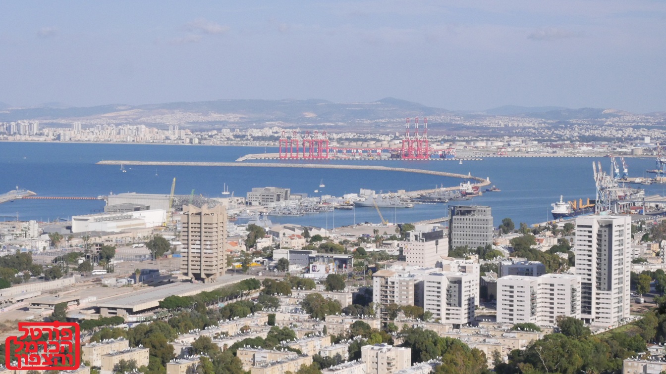 העיר חיפה אחת הערים היפות והמסודרות בישראל, מבט למפרץ חיפה במישור החוף היחידי והגדול בחוף הים התיכון של ישראל, כ 12 קילומטר במפרץ עובר נחל קישון שנשפך לים התיכון.