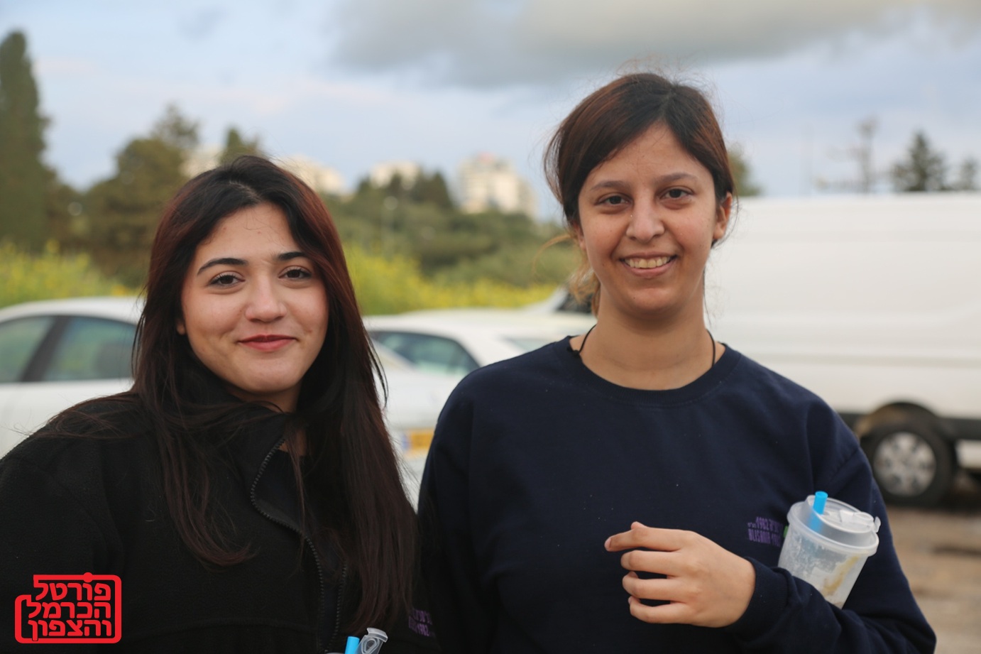תמונה של הצעירות מרסל סאלח ויסמין חלבי, תושבות דאלית אל כרמל, שעוברות כמו כל עם ישראל ממגונית למגונית, כדי להסתתר מהטילים שעפים על האזרחים מאיראן ולבנון, מרסל סאלח צעירה רצינית שמכוונת גבוה, יסמין חלבי עובדת קשה כדי להגשים את המטרות שלה, חברה טובה ורצינית.