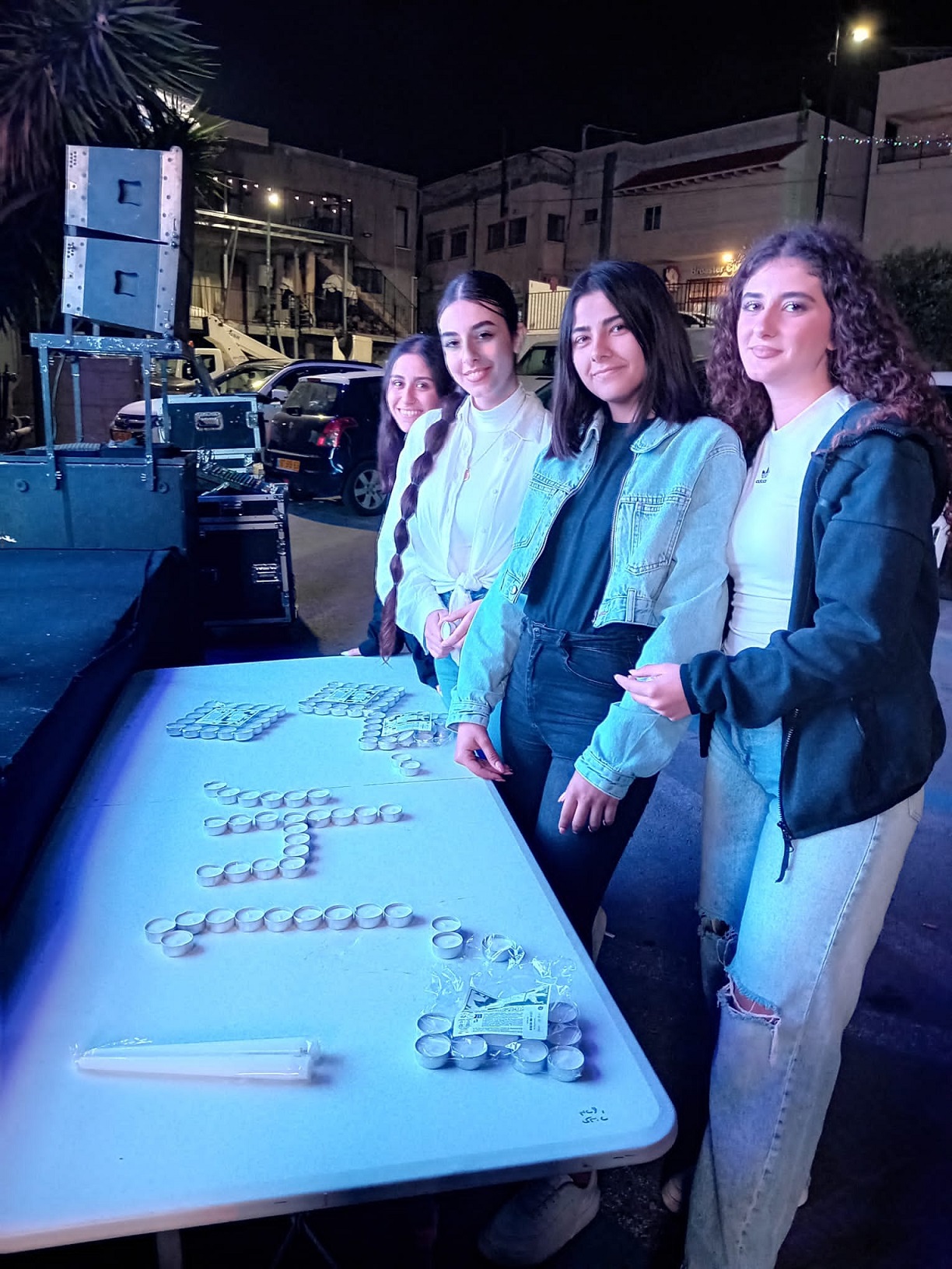 מתנדבות האגודה להתנדבות בבית ג'ן ועמותת נסיג' בפרויקט של הדלקת נרות עם הכיתוב 1,400 כמניין הנרצחים במלחמה בדרום, הצעירות במפגן של סולידריות חברתית, וחיבוק לתושבי הדרום ואנשי כוחות הביטחון.