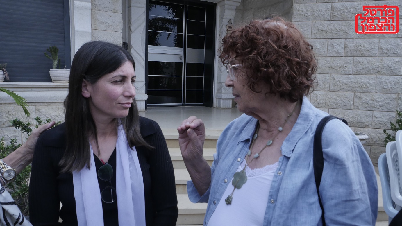 תמונה של אלמנות מערכת הביטחון בישראל, נאדייה כהן אשתו של אלי כהן הי"ד יחד עם מונה עבדאללה אלמנתו של סגן אלוף עלים עבדאללה סעד ז"ל, נאדייה הגיעה לביתה של מונה לנחם ולחזק אותה.