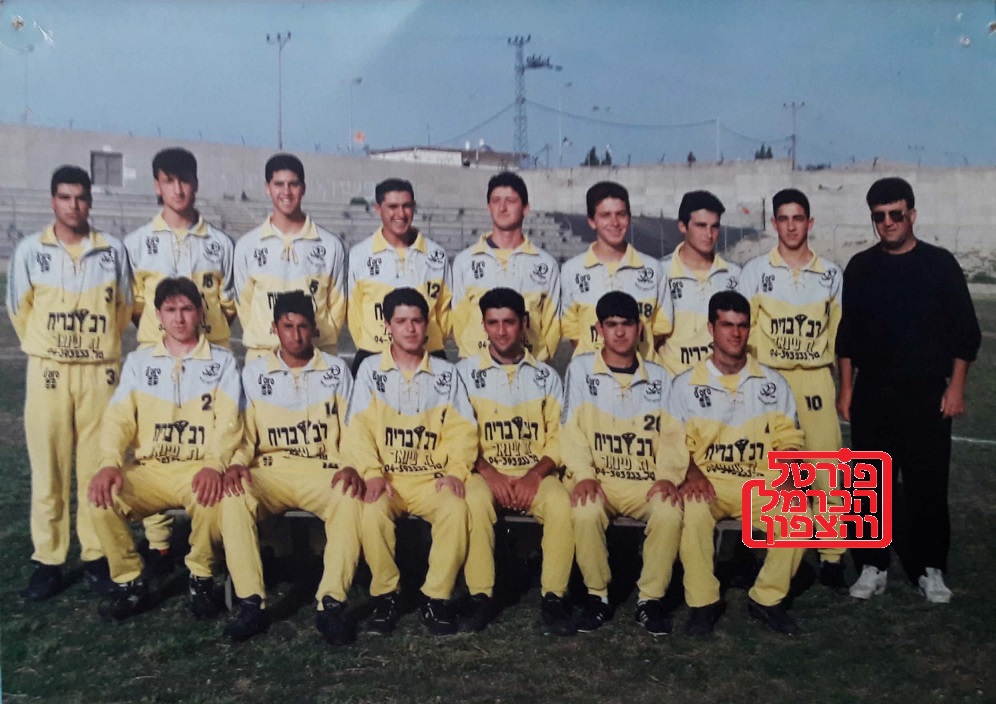 תמונת ארכיון משנות התשעים, של שחקני נוער מדאלית אל כרמל ששיחקו בהפועל דאלית אל כרמל, עם האמן המנוח אנוור חלבי, באותם שנים הפועל דליה כיכבה בליגה הארצית.