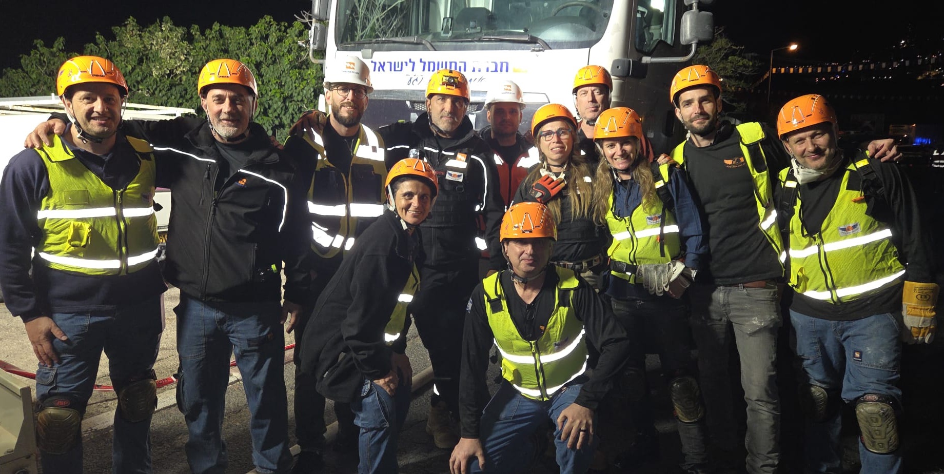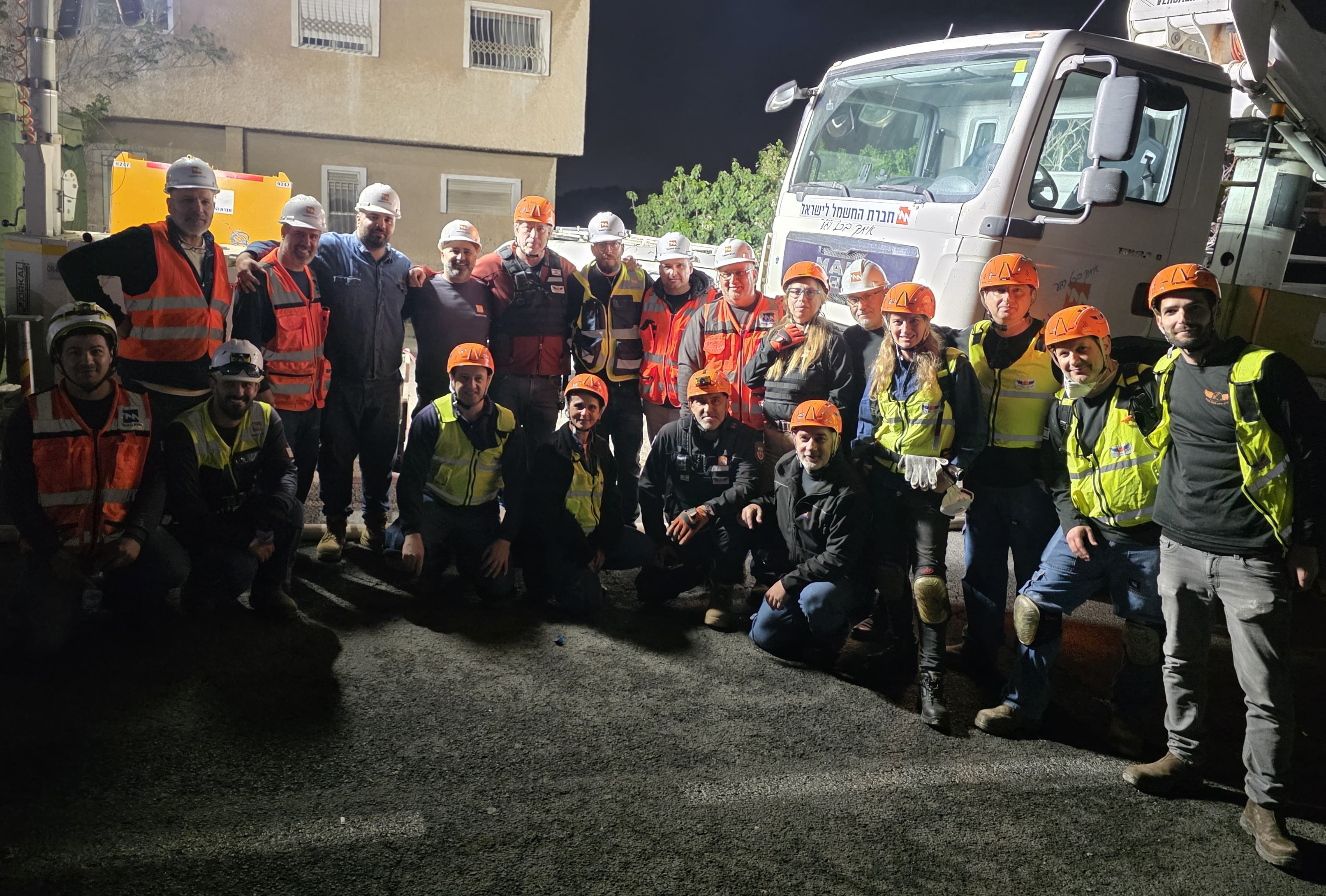 תמונה של הצוותים של חברת החשמל שעבדו בזירת הנפילה בחיפה מקבלים עידוד ותמיכה מהנהלת הארגון.