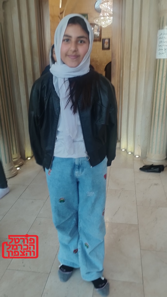התלמידה ענאב אבו חמד תושבת דאלית אל כרמל, ילדה פקחית חרוצה שלא יכולה להתעלם ממה שהיא רואה מסביב, ענאב עוזרת ומושיטה יד לכל מי שצריך סיוע, ענאב ילדה מיוחדת ואהובה על כולם, התמונה צולמה במתחם קבר יתרו עה"ש.