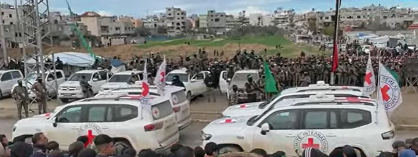 היום משתי במות שהכין חמאס בעזה ישתחררו עומר שם טוב, אליה כהן, עומר ונקרט, טל שהם, אברה מנגיסטו והישאם א-סייד, לאחר 505 ימים בשבי החמאס, כזכור הלילה הושבה גופתה של שירי ביבס, חמאס הודיע שאחד החטופים הישראלים יישא דברים מעל הבמה.