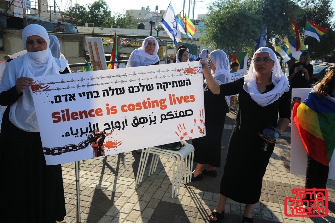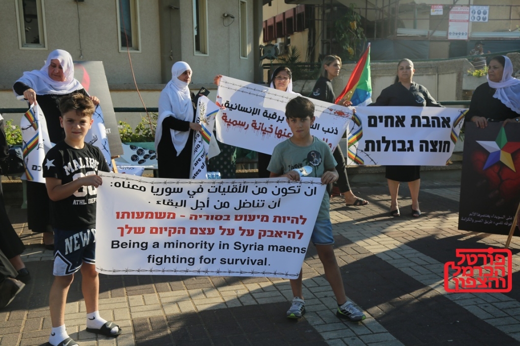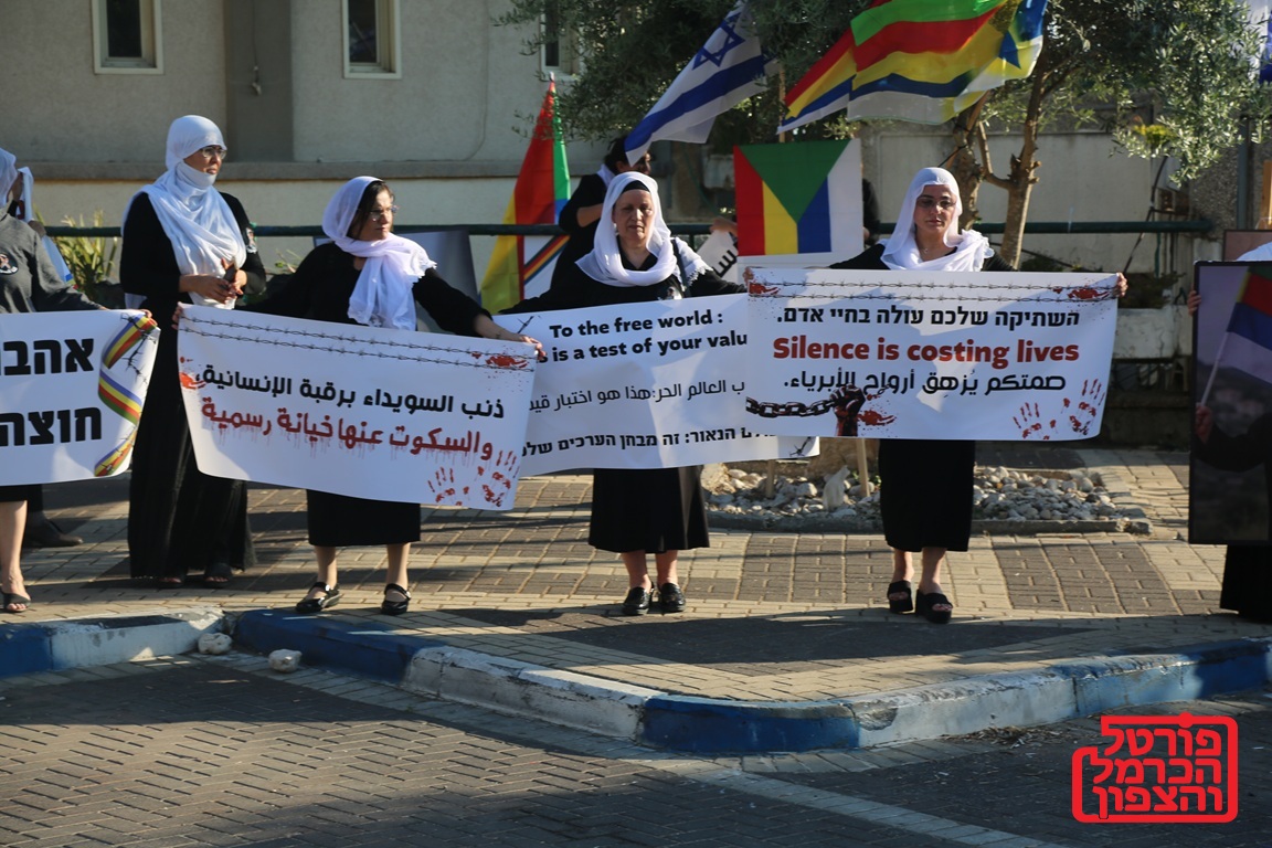 האישה הדרוזית לא יכולה עוד לשבת בשקט נוכח הטבח שביצעו כנופיות אלג'ולאני בבני העדה הדרוזית בסווידא, האישה קמה וצועקת הצילו אל תשבו עוד בשקט, הן עמדו תחת כותרות שלטים שהניפו והופנו לקהילה הבינלאומית ולנשיא ארה"ב טראמפ ולעולם האסלאמי, איך אפשר לרצוח בני אדם בשם אללה?.