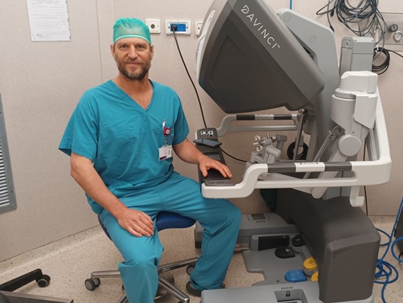 בתמונה: ד"ר עמית כץ, מנהל מחלקת כירורגית חזה ברמב"ם, ורובוט הדה וינצ'י, צילומים: הקריה הרפואית רמב"ם