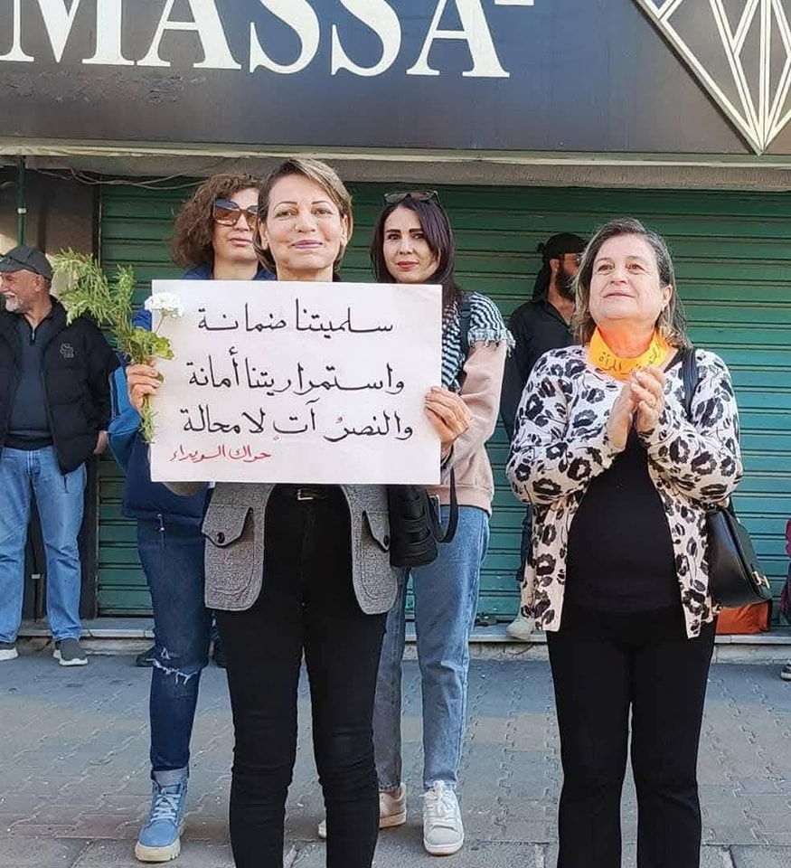 מאז היא הייתה מהראשונים שהפגינו בסווידה כנגד מדיניות ממשל אסד.