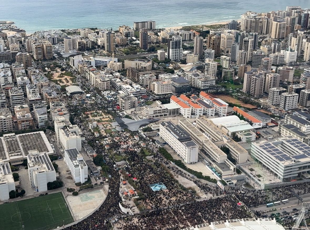 מטוסי חיל האוויר בשמי ביירות במהלך הלוויתו של חסן נסראללה