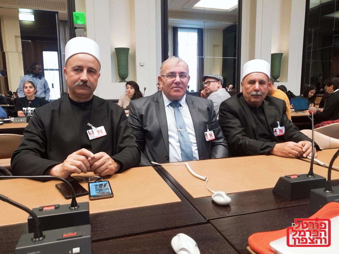 שיח' קאסם בדר מהמועצה הלאומית לשלום מטעם האו"ם, יחד עם השיח' נסיף בדר ואיש החברה פייסל ח'טיב, בביקור רשמי בג'נבה בכנס של האו"ם, בו הם מייצגים את המיעוטים, שיח' קאסם וחברי המועצה הלאומית לשלום עושים עבודת קודש בהסברה למען העדה הדרוזית בישראל.