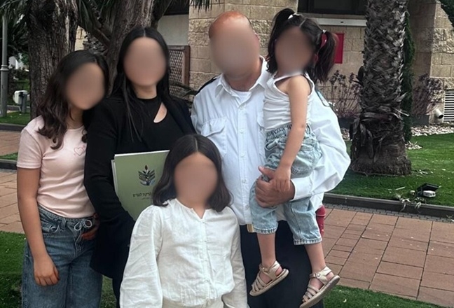 א' עם משפחתו בסיום קורס מטה ופיקוד במכללות הצבאיות
