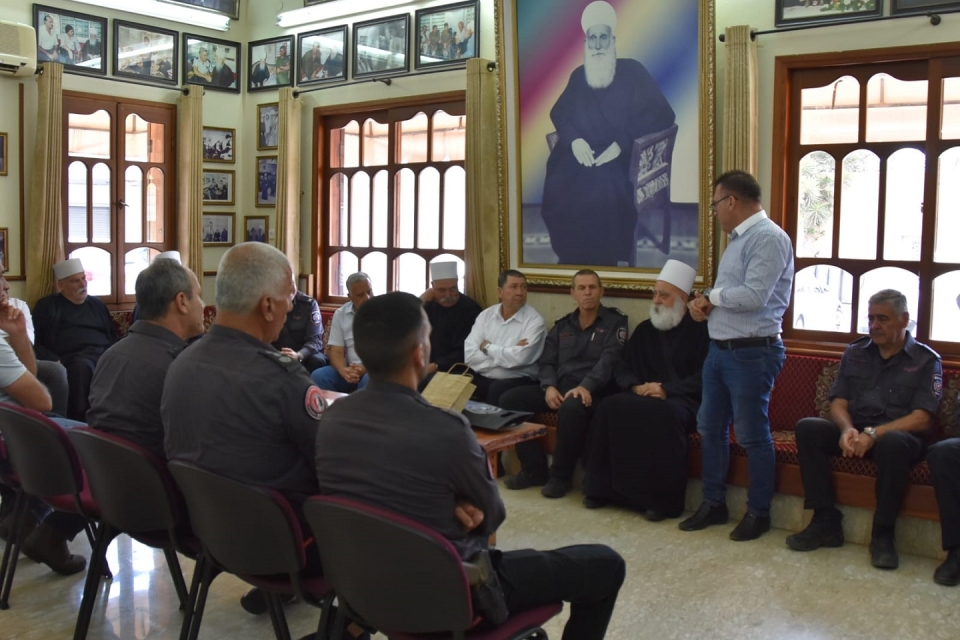 הנציב כספי מלווה בסגנו טפסר בכיר שמעון בן נר, מפקדי מחוזות חוף וצפון טפסר חזי לוי וטפסר ניזאר פארס, סממ"ז צפון תת טפסר יאיר אלקיים ויועץ הנציב לחברה הערבית כאיד דאהר, דנו עם השייח טריף וראשי העדה על העמקת שיתוף הפעולה ושילובם של בני העדה בזרוע המבצעית ובתפקידי מטה במערך הכיבוי.