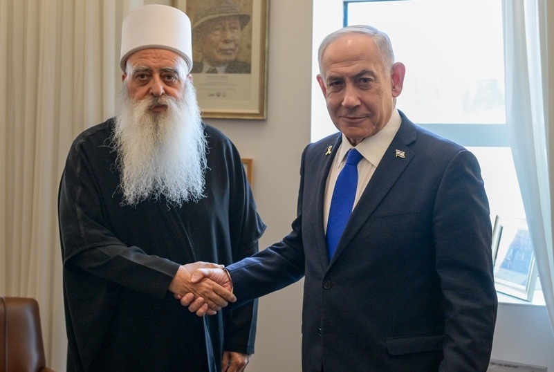 ראש הממשלה בנימין נתניהו נפגש בלשכתו בירושלים עם המנהיג הרוחני של העדה הדרוזית השייח' מוואפק טריף. ראש העדה הדרוזית העלה בפני ראש הממשלה נתניהו את מצוקתם של הדרוזים בסווידא בסוריה, ועד כמה המצב חמור ונדרש סיוע להם.