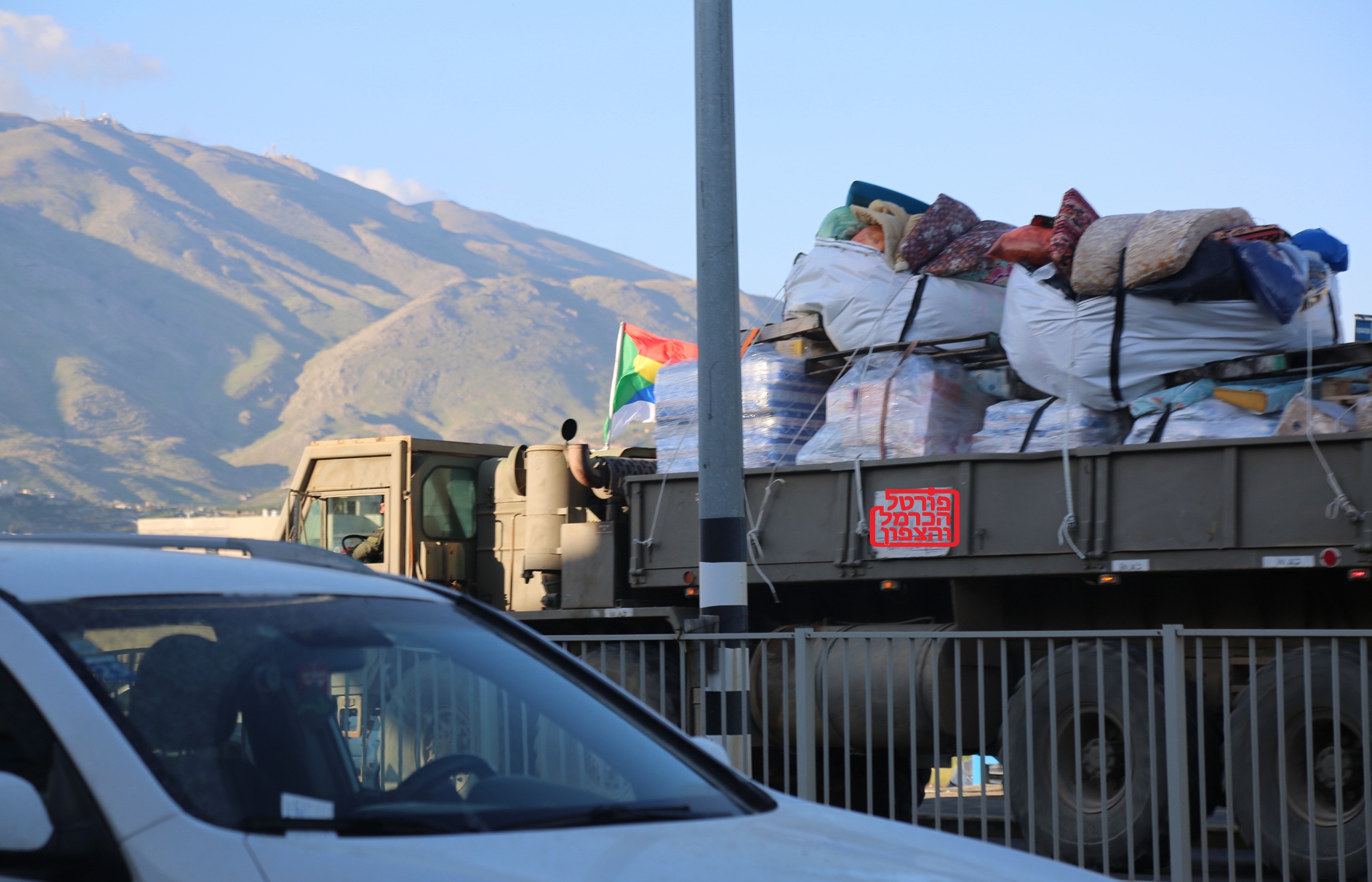 מה שבלט במבצע העברת הציוד המשאיות הצבאיות שנסעו עם דגל הדרוזים, כאות הזדהות עם העדה הדרוזית במצב הקשה שהיא עוברת בשבוע האחרון.