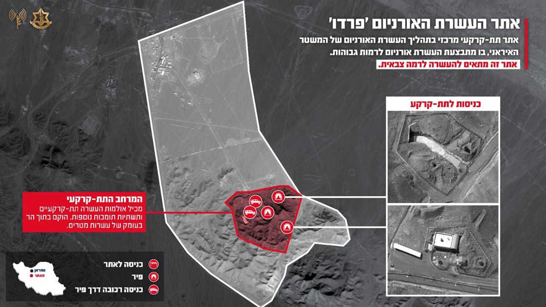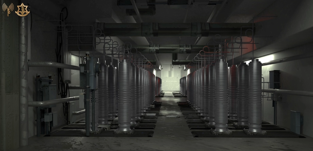 מצורפת אילוסטרציה תלת-מימדית של שלושת האתרים המרכזיים לייצור ליבת נשק גרעיני שהותקפו על ידי צה״ל וצבא ארה״ב - אתר ההעשרת האורניום בנטנז, אתר ההמרה באיצפהאן ואתר העשרת האורניום ׳פרדו׳: קישור