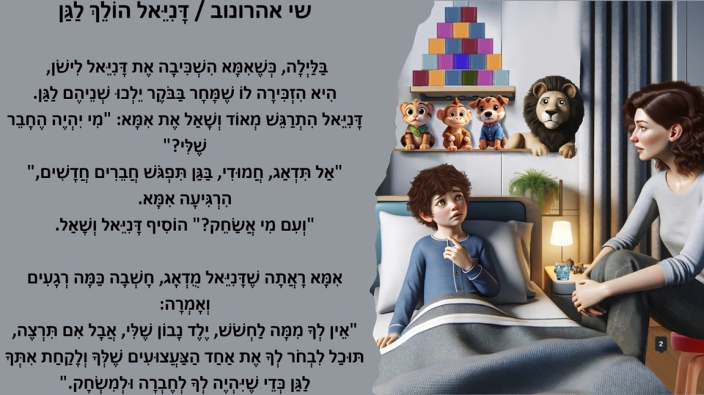 ההשראה מגיעה מהחיים: יזם הייטק, חולה טרשת נפוצה כותב ספר ילדים בהשראת בנו בשילוב בינה מלאכותית, שי אהרונוב, סטודנט בקמפוס איל"ן, יזם הייטק, אב לשלושה ילדים וחולה טרשת נפוצה מזה 17 שנים, מוציא לאור ספר ילדים חדש בשם ''דניאל הולך לגן".