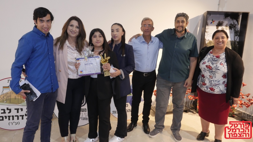 התלמידה הזוכה סירין כמאל ומשפחתה
