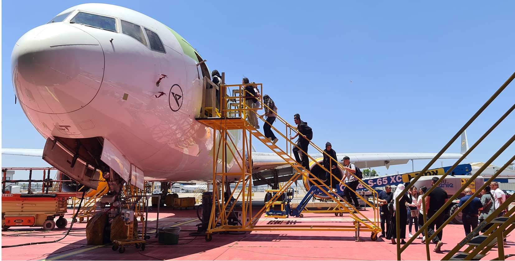 בהמשך הביקור, התלמידים נכנסו למטוס שנמצא בתהליך הסבה ולמדו על תחום המטוסים בתעשייה האווירית בהדרכת ווסים, כמו גם בהאנגר מל''ט, שם שמעו מאיהב על המל''טים השונים, כיצד בנוי מל"ט ועל המשימות הפוטנציאליות שלו.