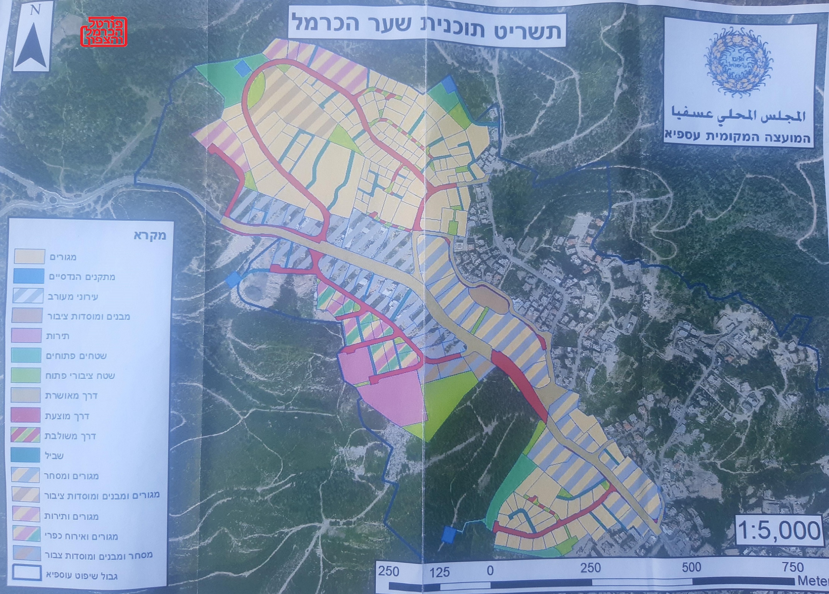5- זהו התשריט של חלק מחטיבת קרקע של כ-18 דונם של האפטרופוס הכללי ומינהל מקרקעי ישראל בכניסה ליישוב עוספיה, במסגרת התוכנית המפורטת שער הכרמל.