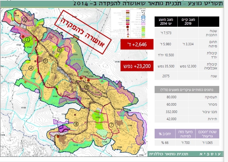 ככל שתקודם בעתיד תכנית מתאר לישוב, עליה להתבסס על התכנית שהוחלט להפקידה בשנת .2014 במהלך הדיון, נאמר לא אחת כי תכנית המתאר האחרונה שאושרה לישוב הייתה בשנת 1978 .ייתכן והאמור בהחלטה זו יכול להסביר מדוע כך הם פני הדברים.