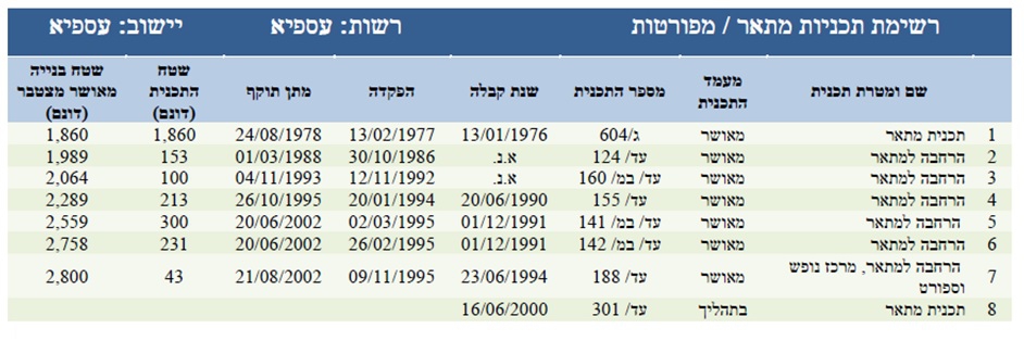 שטחי גריעות, בכפוף לתכניות שיוכנו ויאושרו על ידי הוועדה המחוזית. במהלך שנת 2008 בוטלה המועצה המאוחדת והמצב חזר לקדמותו. כעבור שנה התקיימו בחירות לראשות המועצה בהן נבחר וג'יה כיוף ראש המועצה המקומית עוספיה. בזמן עריכת הדוח.