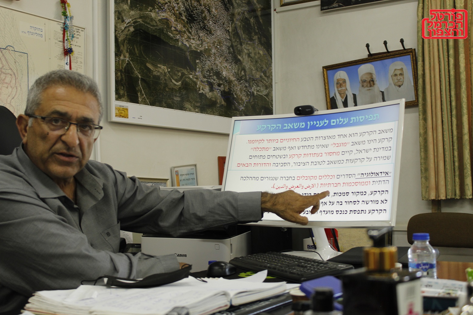 עו"ד ראדי נג'ם מסביר את התפיסה של הקרקע בחברה הדרוזית: "הקרקע כמקור סמכות נשמרת בידי הדור המבוגר, והדור הצעיר לא מורשה לסחור בה על אף שהיא בחזקתו, הקרקע נתפסת כמקור שקובע מעמד האדם בחברה, ההליך הזה נקבע לאור זה שב1948 הדרוזים החזיקו ב 325 אלף דונם, ב 2016 הדרוזים החזיקו ב 320 אלף דונם, שבתוכם שליש שטחים פתוחים, שליש למעבר אקולוגי, שליש שמורת טבע וגנים לאומיים".