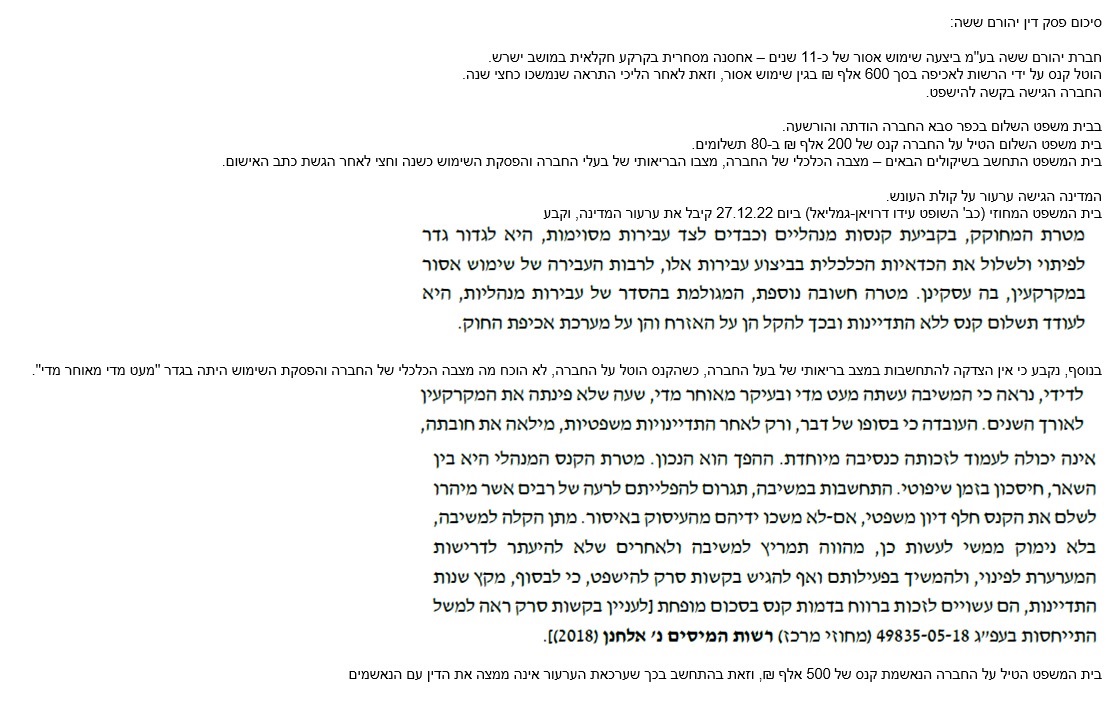 סבא, מפי כב' הש' אביב שרון, במסגרת ת"פ מספר 49122-03-20, ובו הוטל על המשיבה - חברה שעיסוקה ביבוא ושיווק קטניות ומוצרי מזון קנס בסך 200,000 ש"ח.