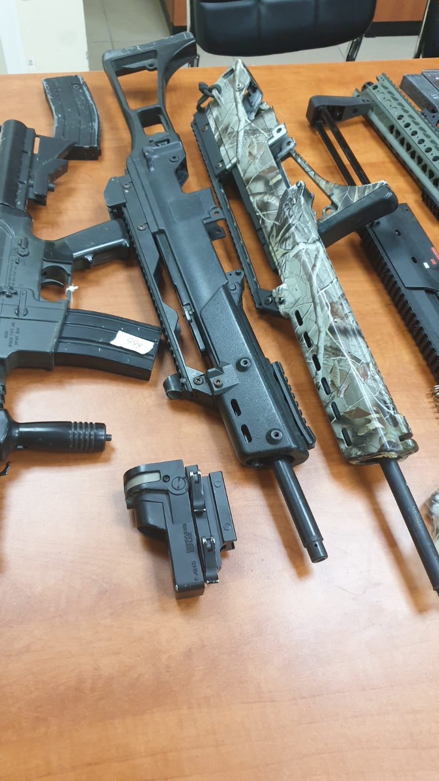 בתוך כך, בחיפוש בבית של חשוד תושב המקום בן 27 נתפסו כמויות גדולות של רובים, אקדחים ומחסניות איירסופט אשר על פי החשד יועדו להסבה לנשק חם.