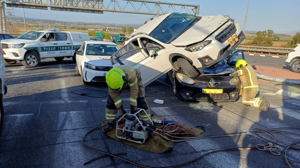 צוותי כיבוי ממרחב עפולה וקריות חילצו שני לכודים מתאונת דרכים בה היו מעורבים שני כלי רכב.