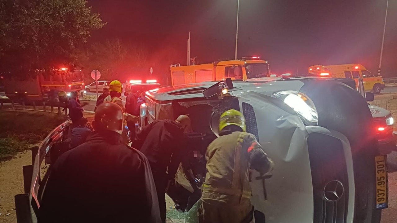 לוחמי אש חילצו פצועים ממיניבוס שאיבד שליטה