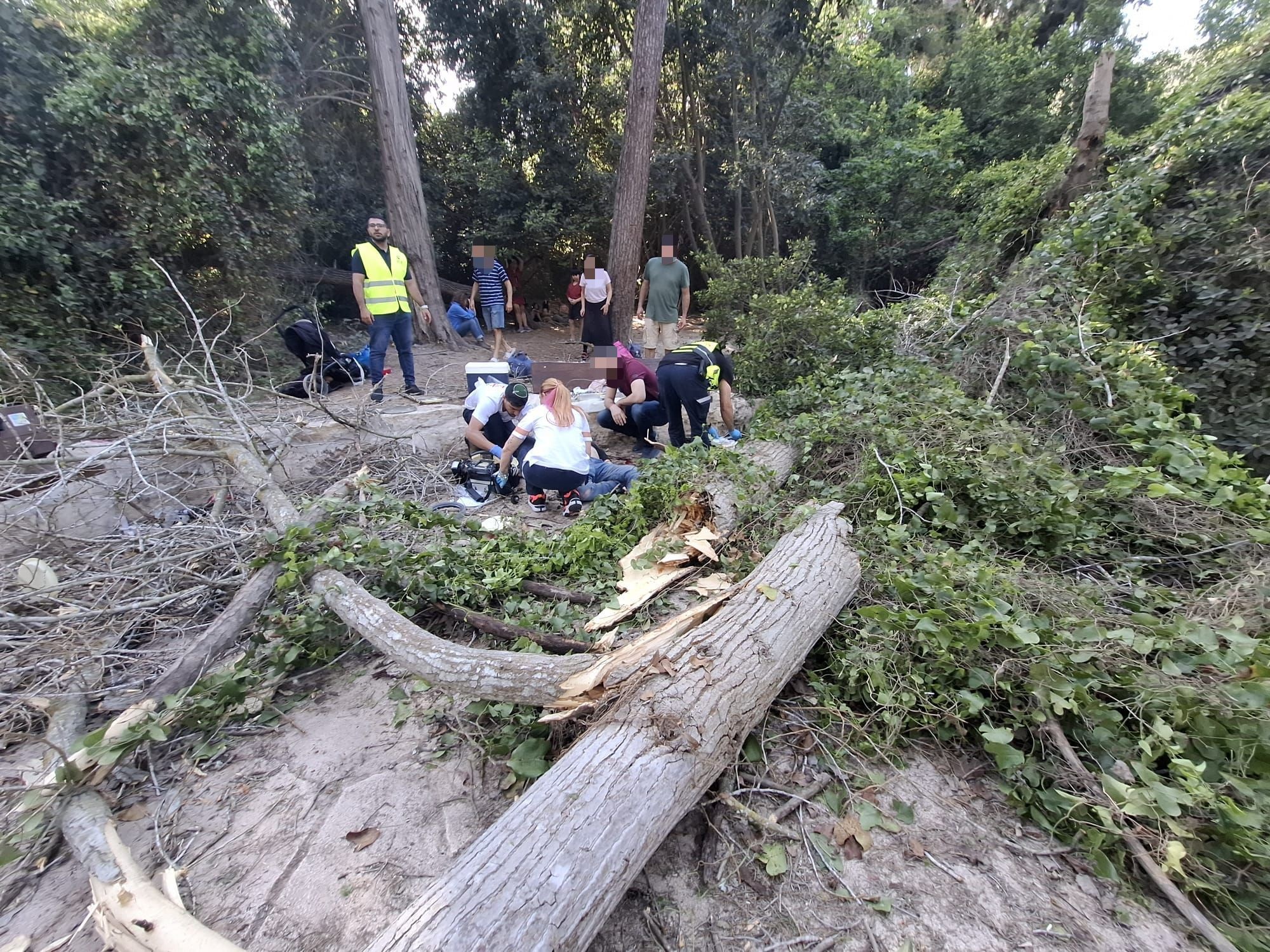 בשעה 16:18 התקבל דיווח במוקד 101 של מד"א במרחב כרמל על פצועים כתוצאה מעץ שנפל בשטח פתוח סמוך לנחל השופט. חובשים ופראמדיקים של מד״א העניקו טיפול רפואי ופינו לבי״ח רמב״ם, אישה כבת 40 במצב בינוני עם חבלת ראש, תינוקת בת 4.5 חודשים במצב בינוני עם חבלת ראש, וגבר כבן 60 במצב קשה עם חבלת ראש וגפיים תחתונות. הגבר פונה לבית חולים תוך כדי פעולות החייאה שבסיומן נקבע מותו בבית חולים.