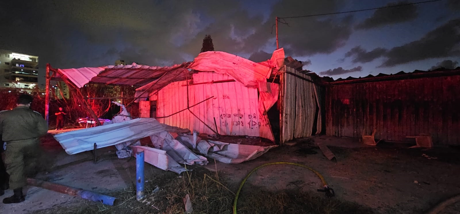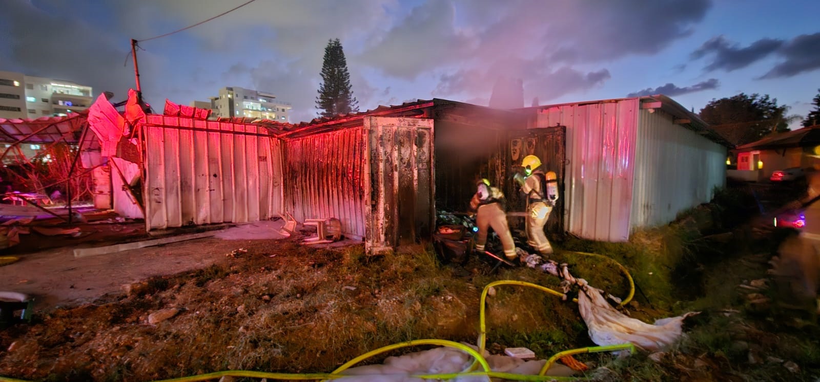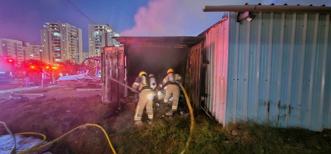 לוחמי האש מתחנת זבולון בפיקודו של סגן טפסר שמואל פרנקו, פועלים בשריפת מבנה ארעי בעיר נהריה, כתוצאה משיגורים חוצים משטח לבנון.