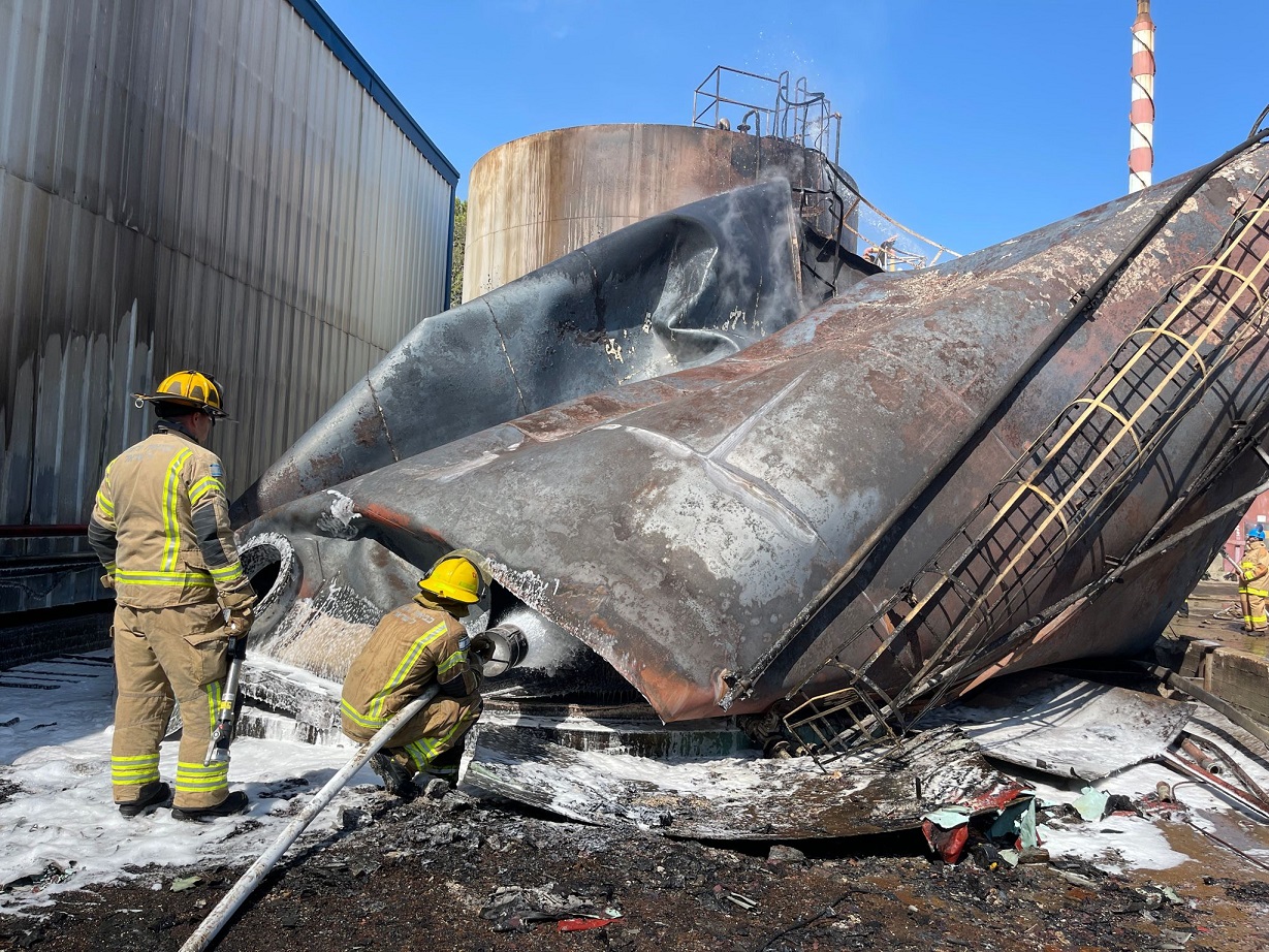 לאחר הערכת מצב עם עובדי המפעל, הוחלט כי בשל עוצמת הלהבות והחשש הרב שהאש תתפשט למיכל נוסף ולאזורים נוספים במפעל, ראשית יש לפעול לבלימת הלהבות ולהגן על שאר המפעל.