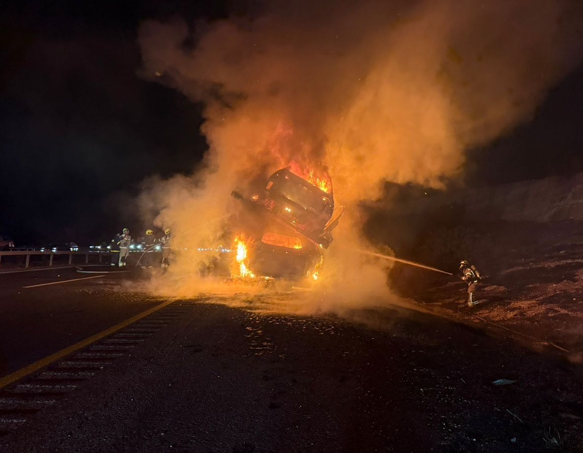 ארבעה צוותי כיבוי מתחנת עפולה פעלו בשריפת משאית להובלת רכבים בכביש 6, סמוך למחלף רמות מנשה, משטרת ישראל חסמה את כביש 6 לצפון, סמוך למחלף עין תות. 5 צוותים מתחנת עפולה פעלו להשיג שליטה על השריפה. 6 רכבים נשרפו כליל, בהם רכב חשמלי ורכבים היברידיים. חוקר דליקות יבחן את נסיבות פרוץ השריפה.