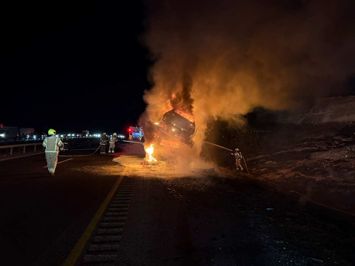 מפקד האירוע, רב רשף מיכאל גולדנברג:"בהגיענו למקום הבחנו במספר רכבים שעל המשאית שעולים באש, ביניהם רכבים חשמליים. האש התפשטה לשטח פתוח סמוך, ולוחמי האש פועלים לבלום את הלהבות ולכבות את מוקדי השריפה".